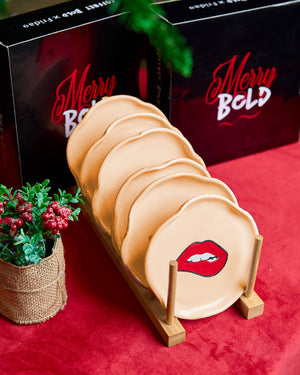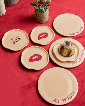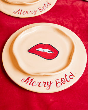 Les assiettes vendue en paire sont d’une inspiration à la fois pop art (bouche) et dolce vita « Merry Bold ». Elles sont pensées pour accommoder vos entrées et desserts lors des fêtes de fin d’année mais aussi à tout autre moment festif.